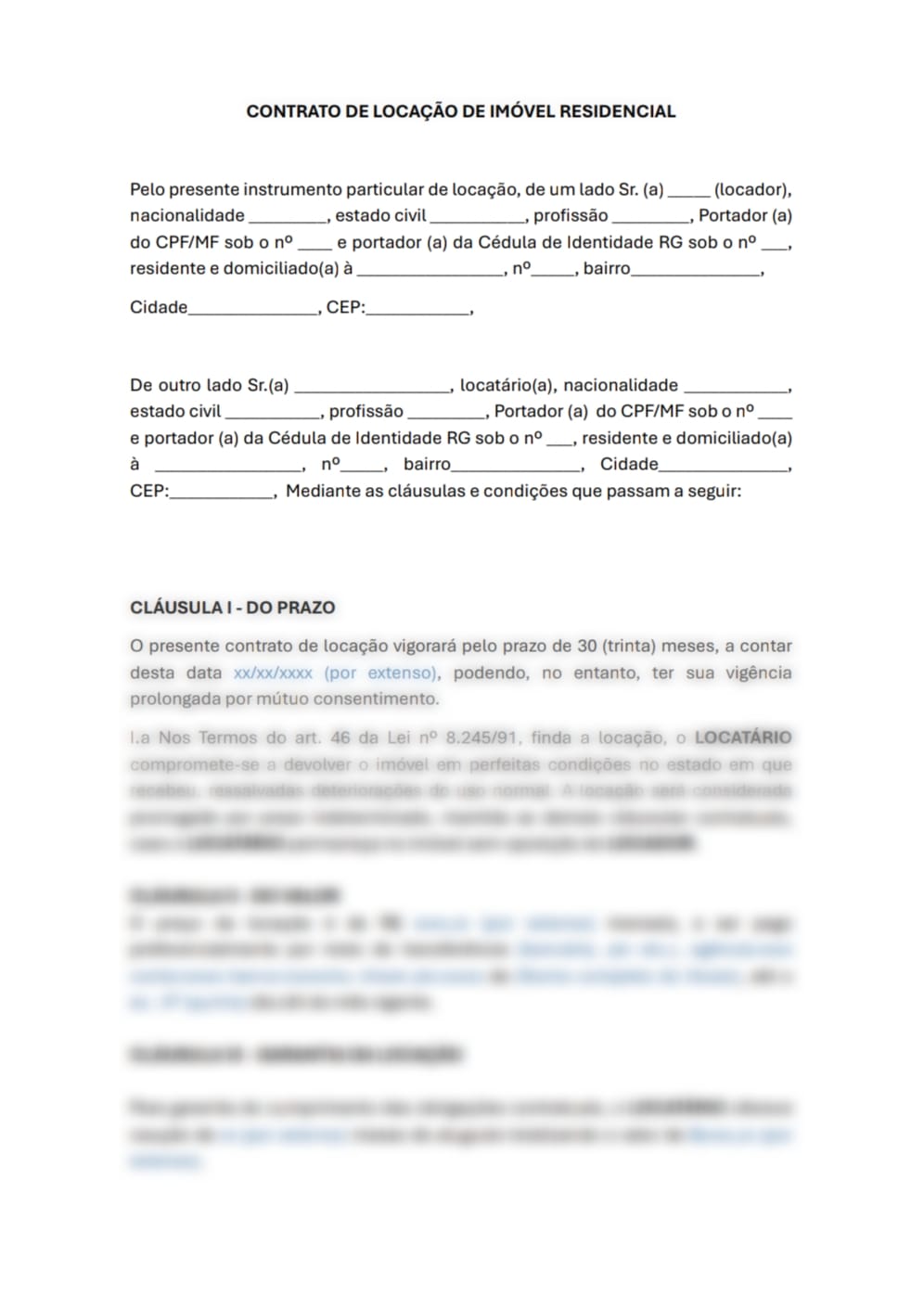 Contrato genérico e editável de Locação de Imóvel Residencial